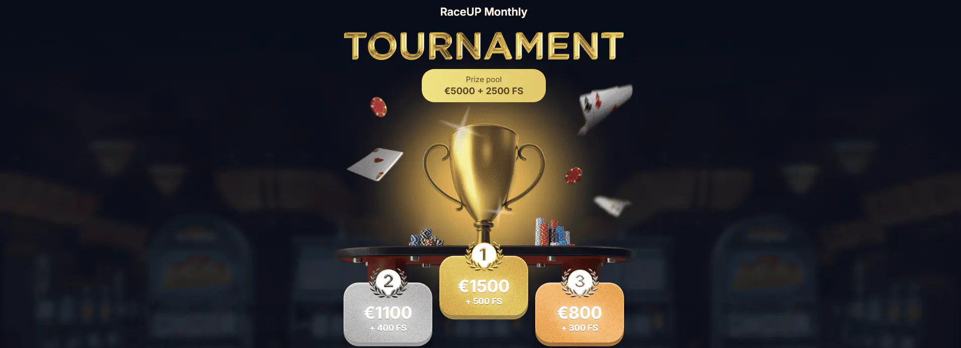 - Torneo Mensile RaceUp: Ogni mese organizziamo un torneo esclusivo riservato alla nostra commraceupty con codice promozionale del casinò raceup: in palio un montepremi progressivo che va a premiare i giocatori più attivi e costanti.